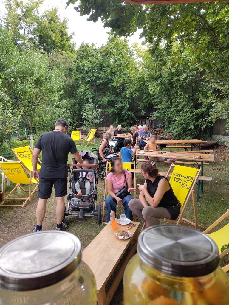 Auch das Sommercafé fand im September statt. Viele leckere Süßspeisen wurden von unseren irakischen Mitgliedern und deren syrischen Freund*innen zubereitet und erhielten viel Lob von den Gästen. Das Gartenkino an diesem Abend richteten wir gemeinsam mit Zukunftsgestalten e.V. aus und zeigten „Bigger than Us“. Der Film begleitet junge Menschen aus verschiedenen Ländern, die sich mit großem Engagement für Klimaschutz, soziale Gerechtigkeit und Menschenrechte einsetzen und zeigt, wie sie trotz globaler Krisen aktiv Veränderungen anstoßen. Nach dem Film gab es ein Gespräch und eine kleine Vorstellungsrunde von Menschen, die sich in Dresden und darüber hinaus in verschiedenen Projekten engagieren. All dies war ein gelungener Abschluss des Abends und eine gute Orientierung, um selbst aktiv werden zu können.