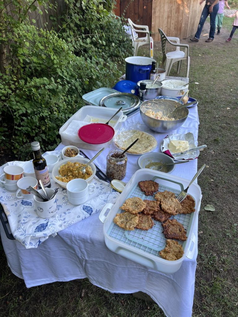 Ebenfalls im September fand wieder unser Pizzanachmittag statt, an dem viele verschiedene Pizzen kreiert wurden, die anschließend unter den hungrigen und neugierigen Besucher*innen verteilt wurden. Beim alljährlich stattfindenden Kartoffelfest wurden aus den Kartoffeln, die wir in den Tagen zuvor geerntet hatten, neben den Klassikern wie Kartoffeln mit Quark auch eine Vielzahl verschiedener Kartoffelkreationen zubereitet – darunter Samosas und weitere leckere Spezialitäten.
