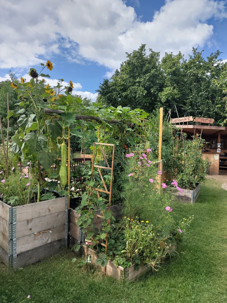Im September stand der Gemeinschaftsgarten zwischen spätsommerlicher Ernte und den ersten Vorboten des Herbstes. Während einige Beete noch Gemüse und Kräuter trugen, begannen andere bereits, sich auf die kommende Ruhezeit vorzubereiten. Es wurde geerntet, Saatgut gesammelt und noch einmal gepflanzt, was vor dem Frost reifen konnte. Gleichzeitig standen Pflegearbeiten wie das Zurückschneiden, Kompostieren und eine Bau- und Reparaturwoche auf dem Programm, in deren Rahmen wir unter anderem an einem Dach für unseren Pizzaofen arbeiteten. Wieder ein aktiver Monat, in dem neben den Gartenarbeiten noch vieles Weitere stattfand.