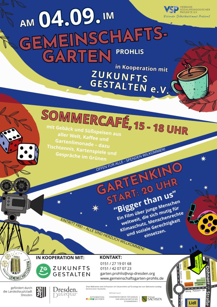 Der Gemeinschaftsgarten lädt ein zum letzten Sommercafé mit Gartenkino in diesem Jahr. 25. August 202528. August 2025 von , posted in Termine