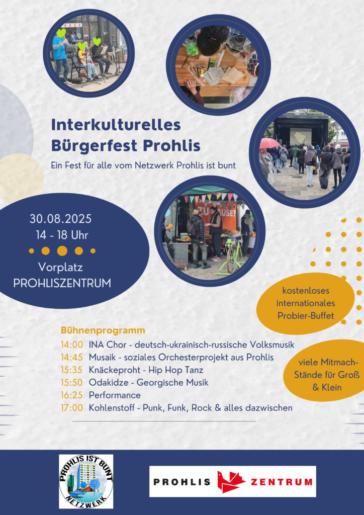 30.08. Interkulturelles Bürgerfest auf dem Vorplatz vom Prohliszentrum 12. August 202521. August 2025 von , posted in Termine