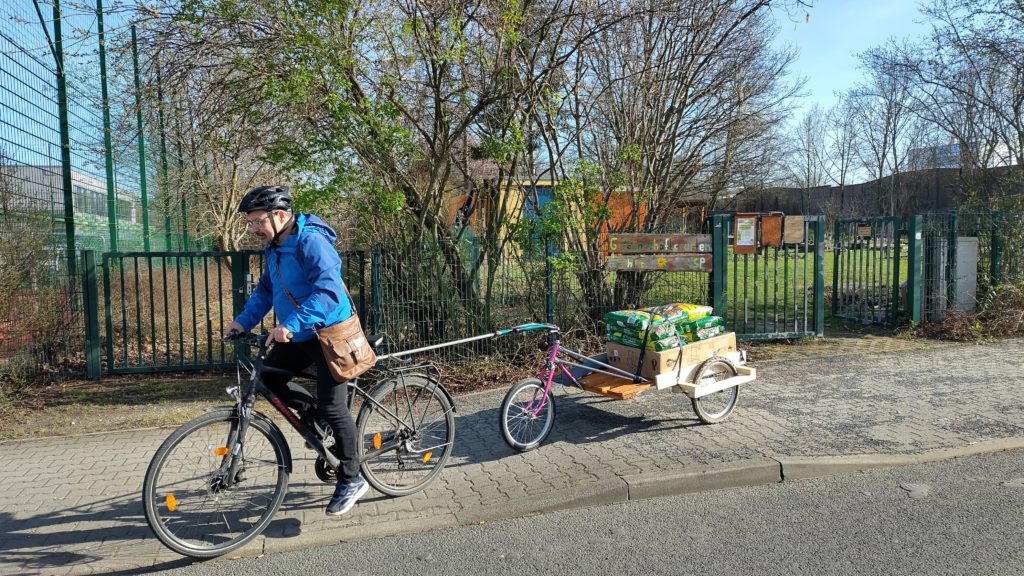 Unser Lastenanhänger steht allen Menschen aus dem Stadtteil während der Öffnungszeiten des Gemeinschaftsgartens zur Verfügung.